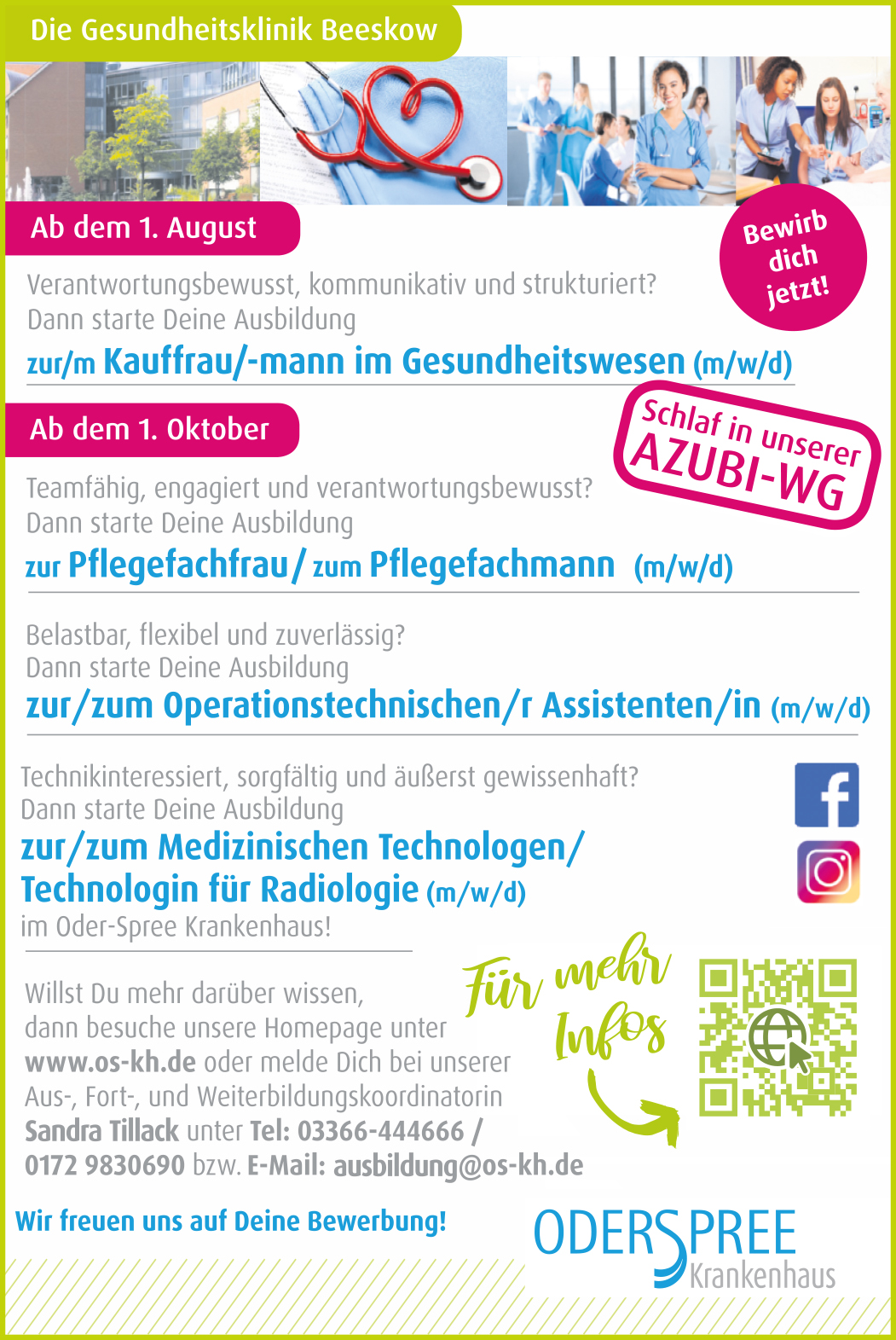 Die Ausbildung zur Pflegefachkraft (w/m/d) im Oder-Spree Krankenhaus wird im Verbund mit der Schule für Gesundheitsberufe e. V. Eisenhüttenstadt durchgeführt.